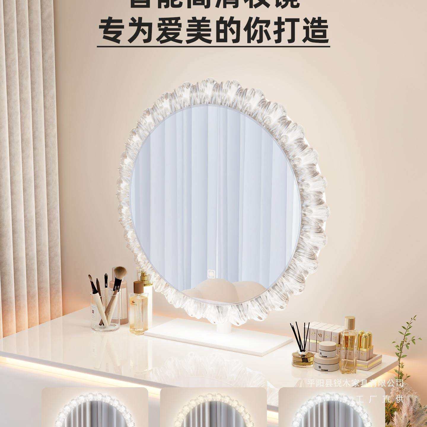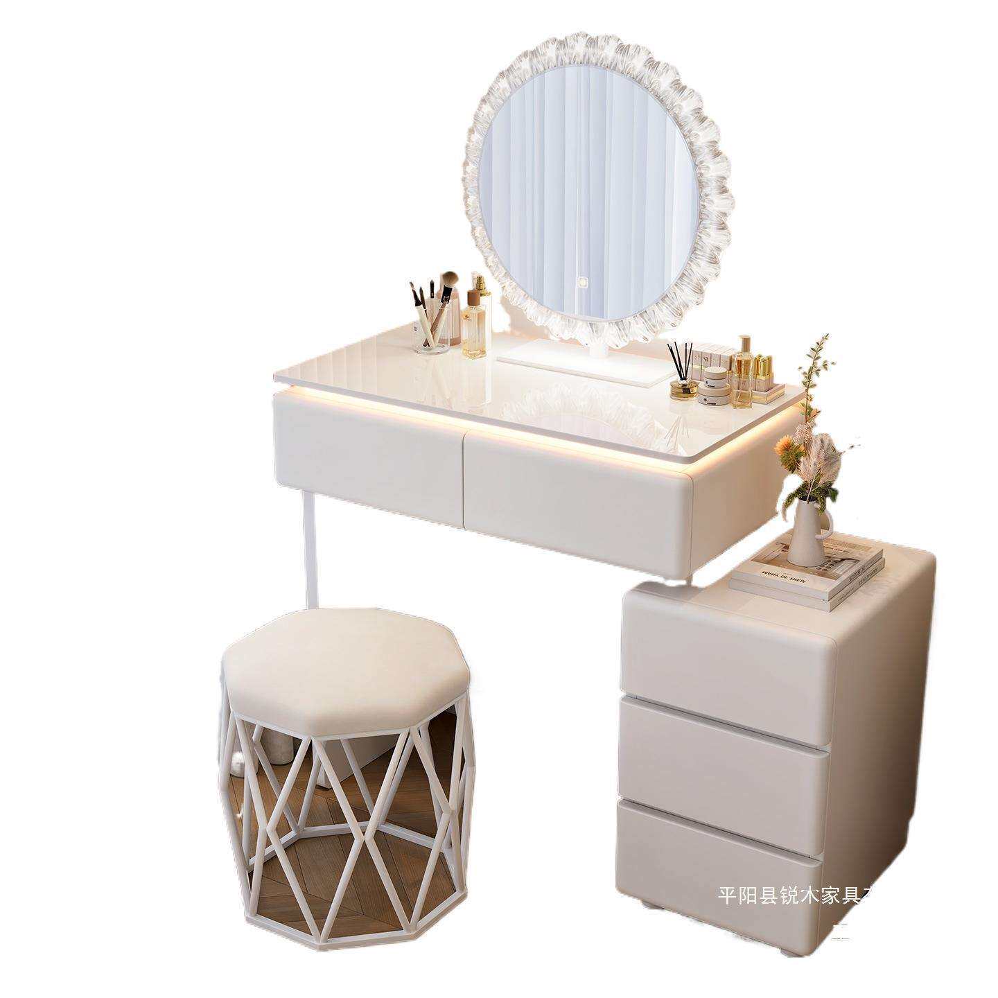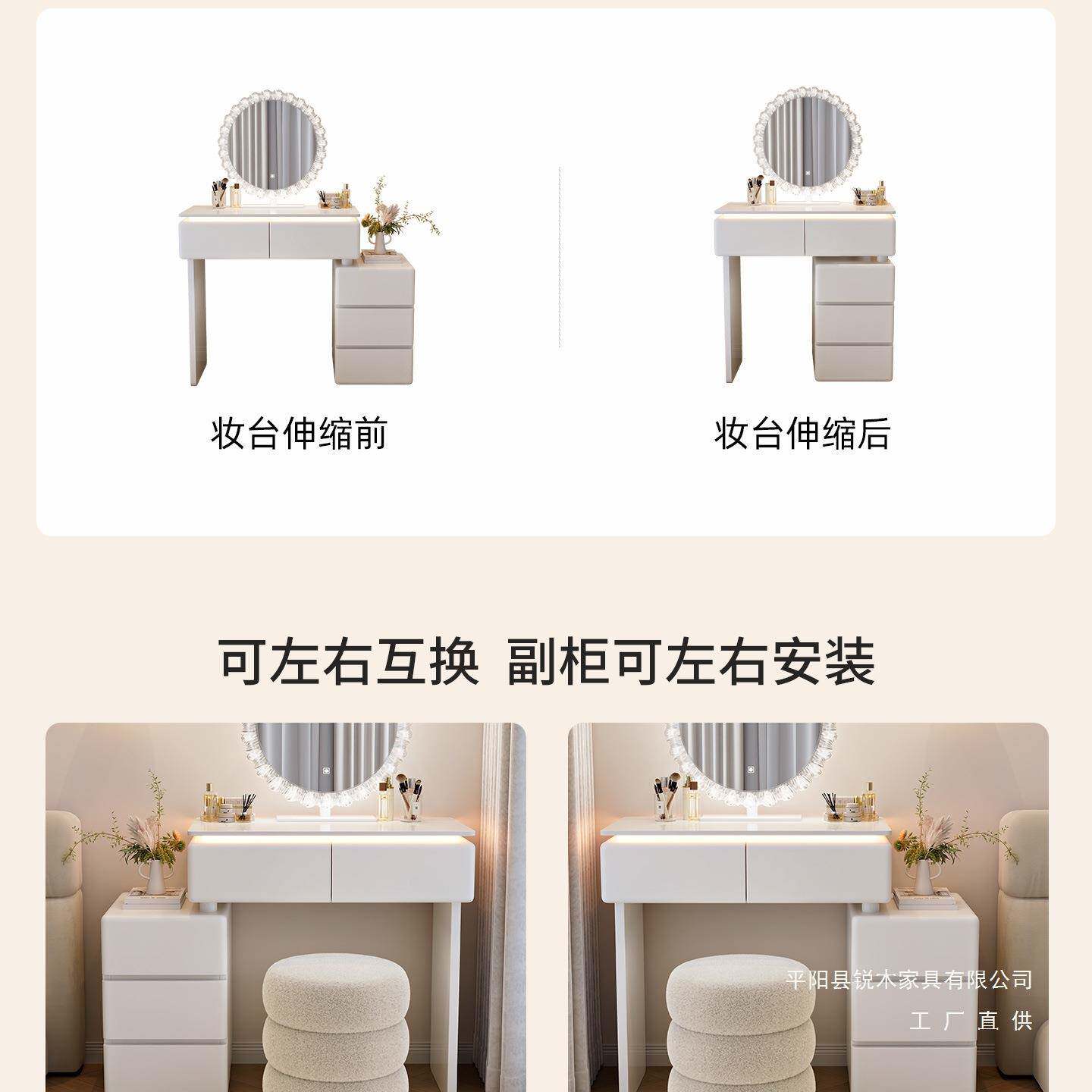 带灯实木梳妆台卧室现代简约小型奶油风化妆桌床头收纳柜一体白色