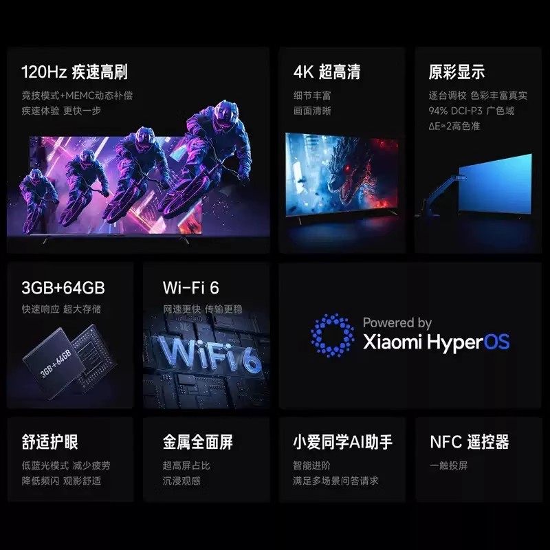 小米REDMI A Pro75英寸55/65智能屏144Hz高刷4K护眼平板电视机