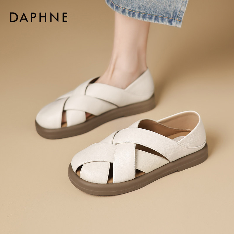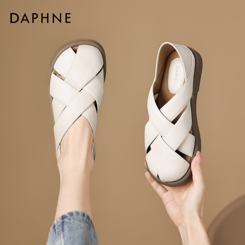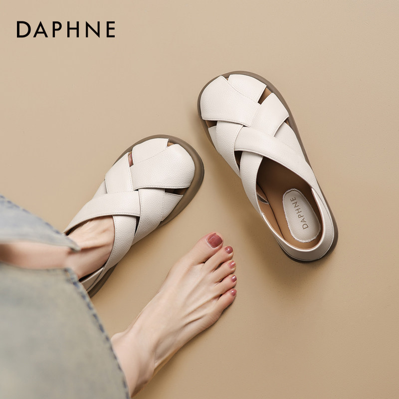 达芙妮凉鞋女2025新款夏季平底罗马鞋包头镂空单鞋外穿编织猪笼鞋