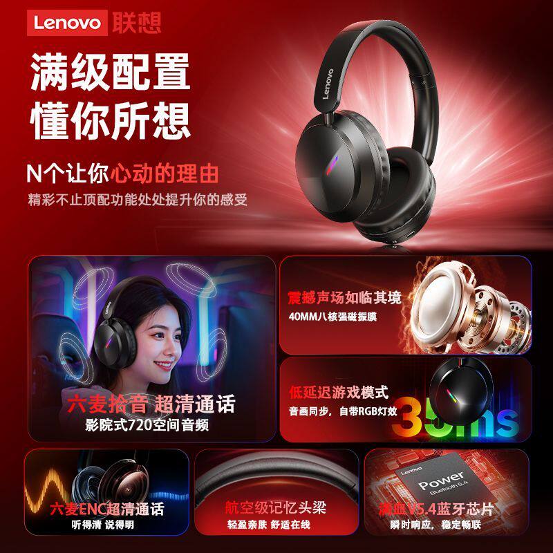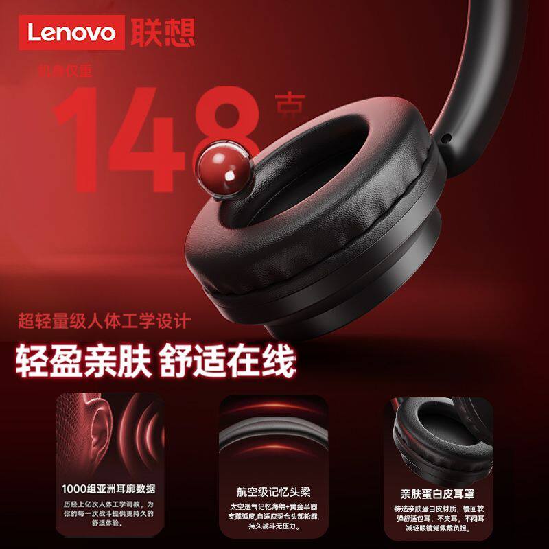 联想蓝牙耳机头戴式无线游戏电竞电脑长续航有线耳麦降噪2026新款