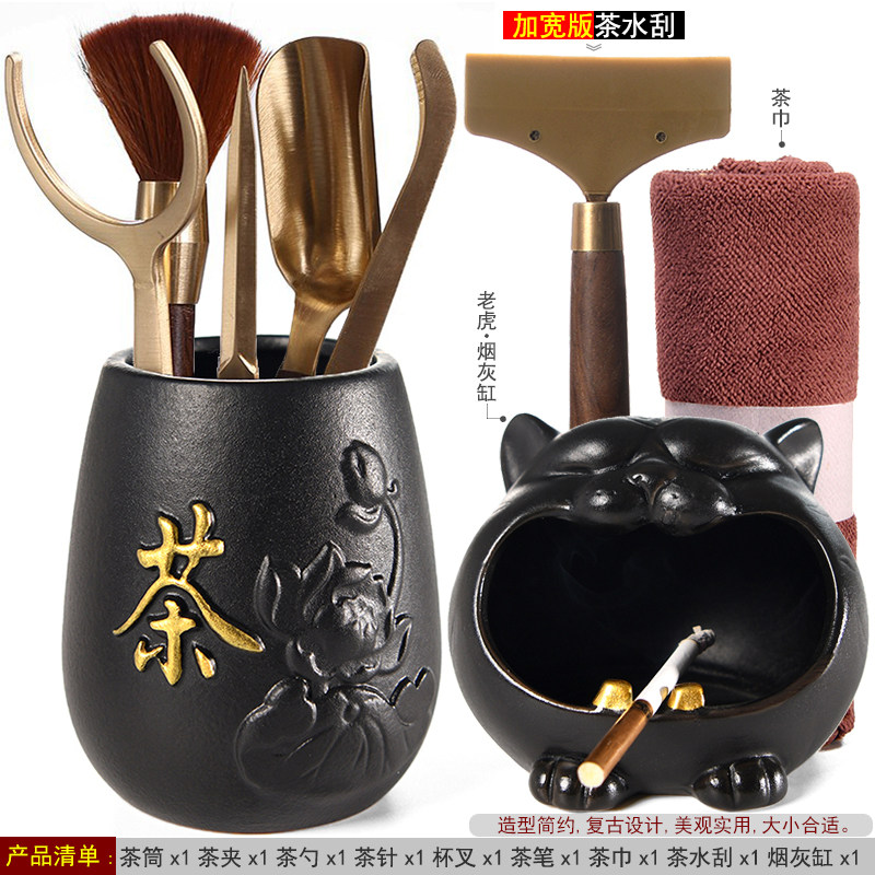 茶道六君子茶禅茶针茶勺茶筒功夫茶具配件6件套泡意烟灰缸摆件