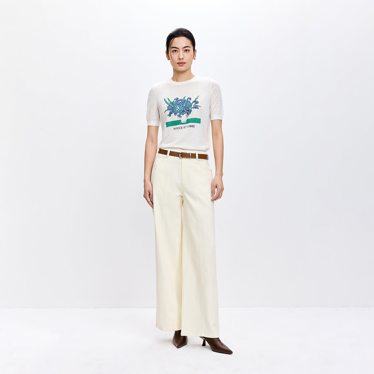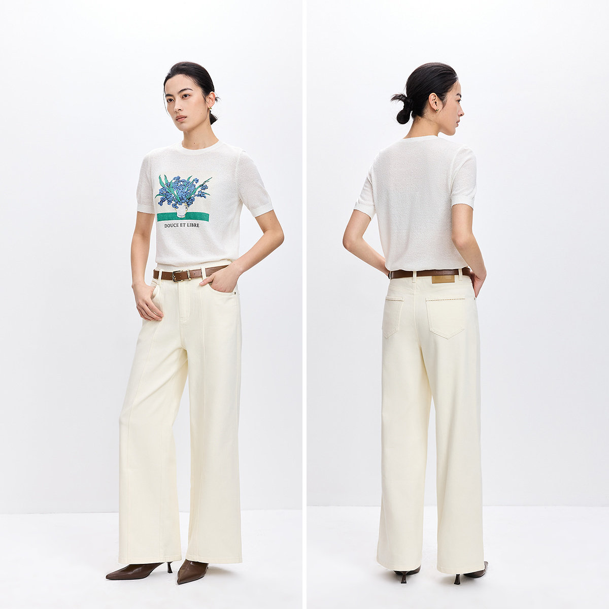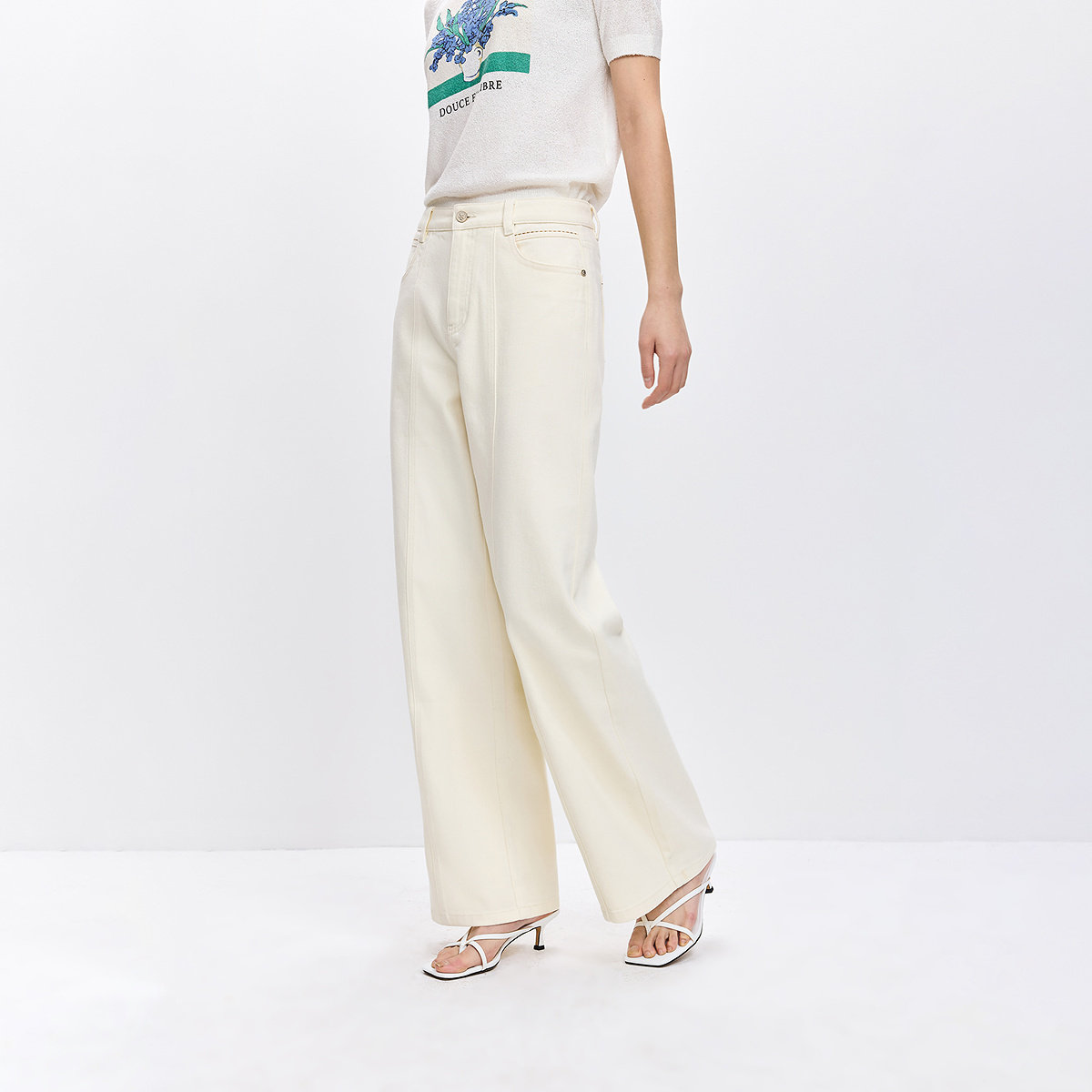 LILY2026春新款女装含莱赛尔休闲通勤百搭米白色直筒阔腿裤牛仔裤
