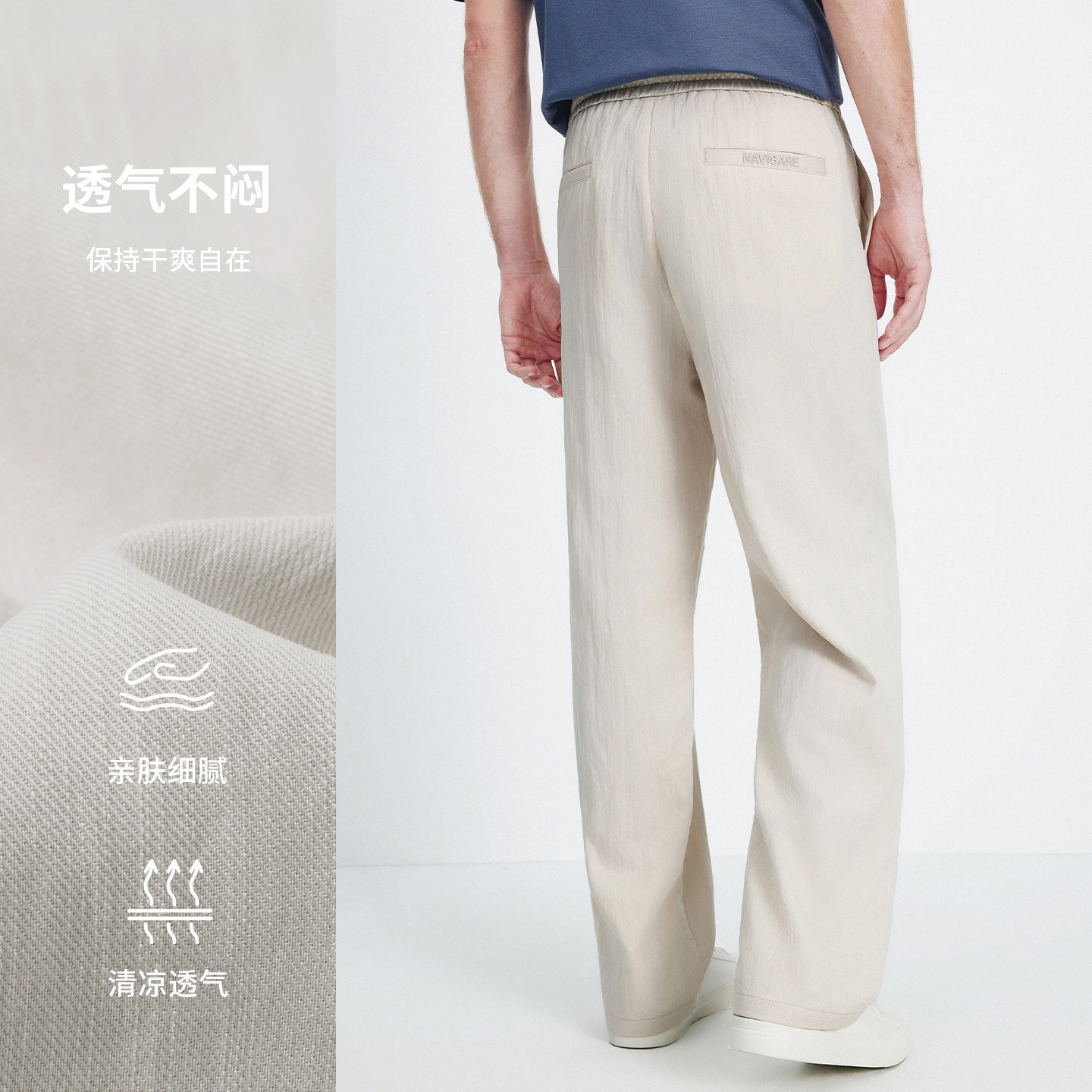 Navigare意大利小帆船莱赛尔弹力休闲裤男2026春夏透气阔腿长裤