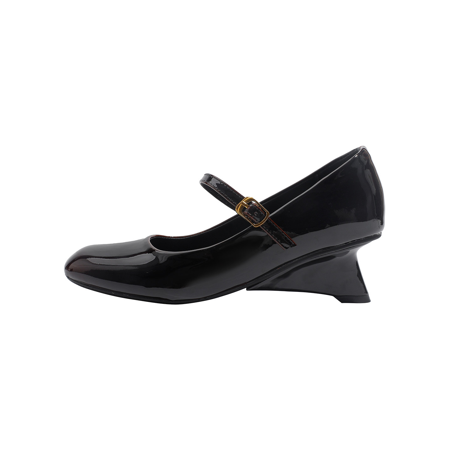 真皮~骄屿琥珀渐变高跟玛丽珍高跟鞋女复古漆皮一字扣带坡跟单鞋
