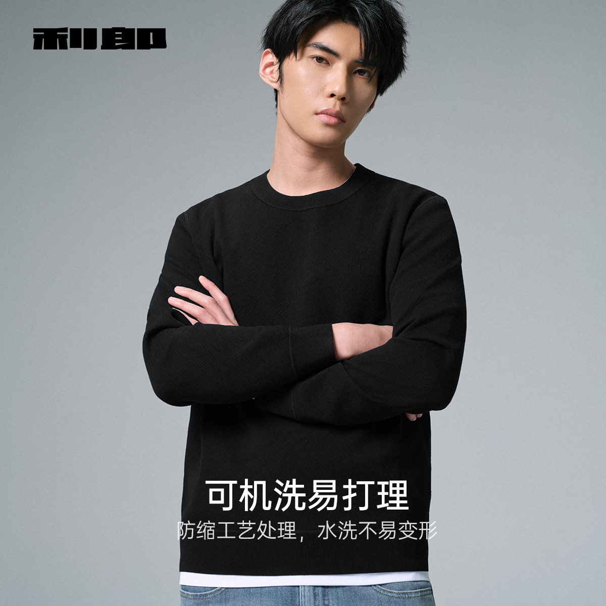 【可机洗羊毛/加绒加厚】利郎官方毛衣男冬季男装保暖黑色毛衫