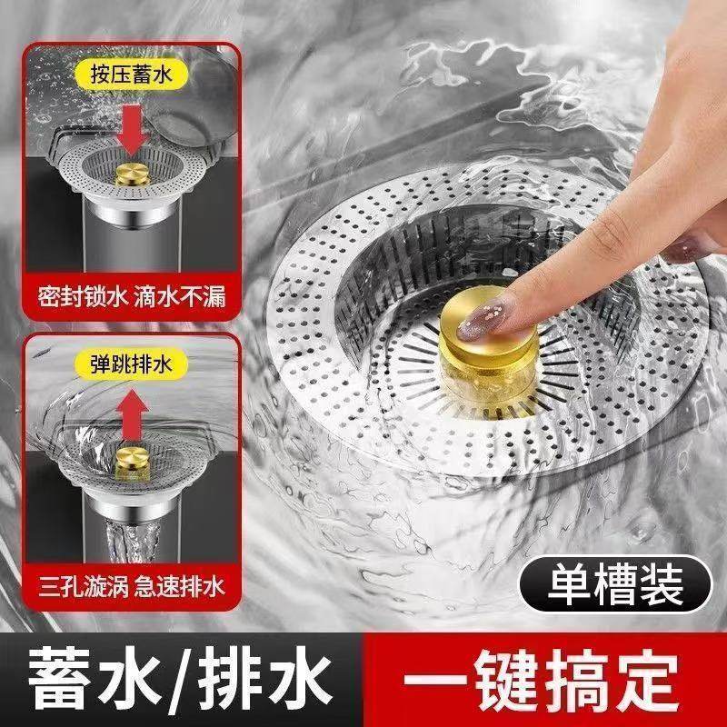 厨房水槽过滤网弹跳芯下水器通用按压式洗碗池洗菜盆漏水塞防堵塞