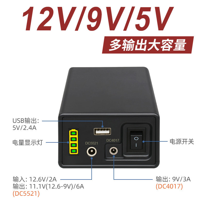 亿森能12V锂电池5v38400毫安大容量5V多功能移动电源带3C认证9V大功率备用电源18650芯路由器LED灯电子琴音响