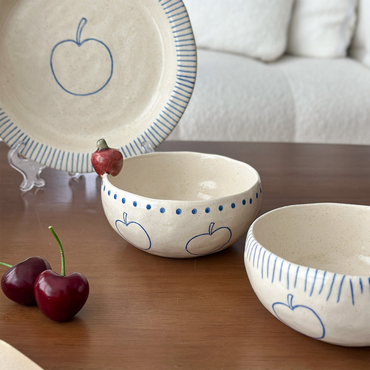 穆尼 复古粗陶酸奶碗好看的可爱早餐套装水果盘饭碗碗盘盘子餐具