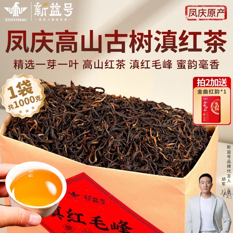 2025新茶云南凤庆金芽滇红毛峰古树红茶浓香型口粮茶叶散装1000g