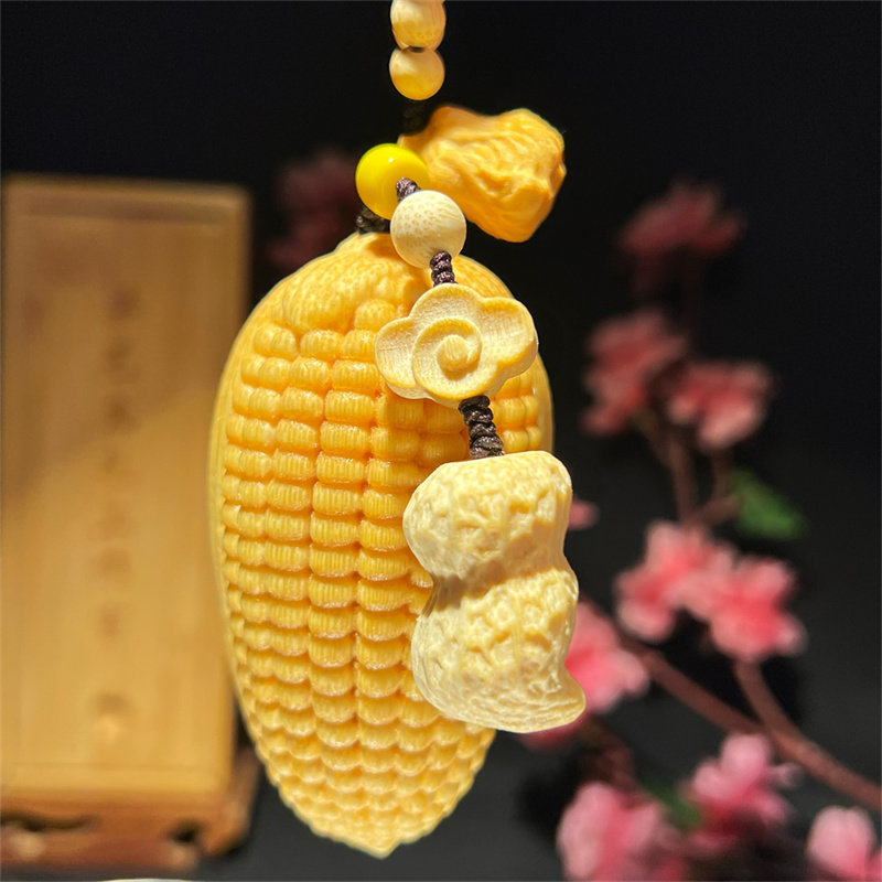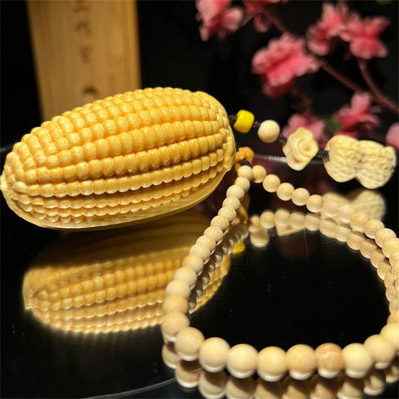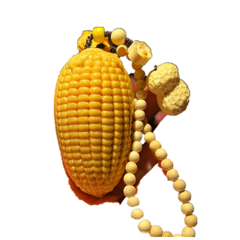 实心竹文玩手把件大玉米带白菜花生祥云配饰竹心竹肉雕刻粒粒饱满