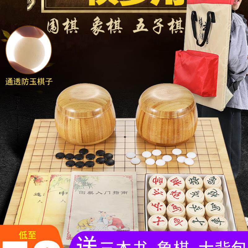 围棋套装五子棋子儿童学生黑白益智初学者象棋木质双棋盘19路木制