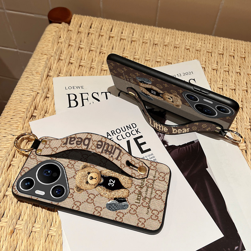 Icool适用华为pura80手机壳p70ultra卡通小熊P60公仔p50pro斜挎皮质保护套P40PRO腕带支架p30斜背外壳挂绳P20