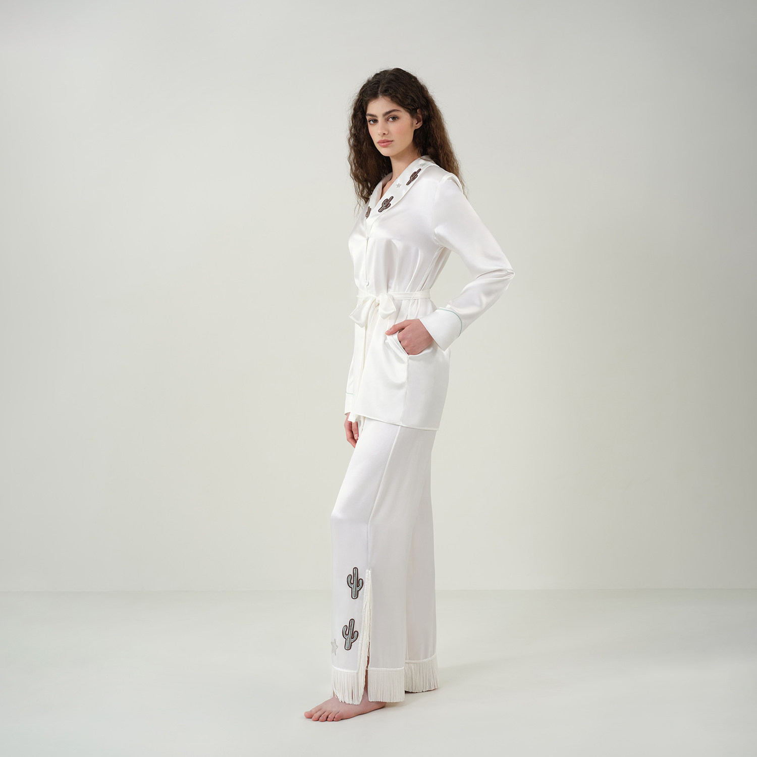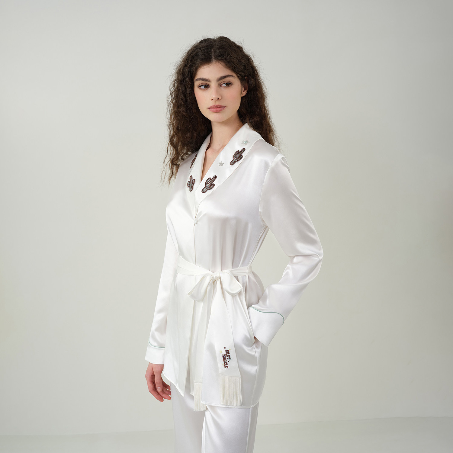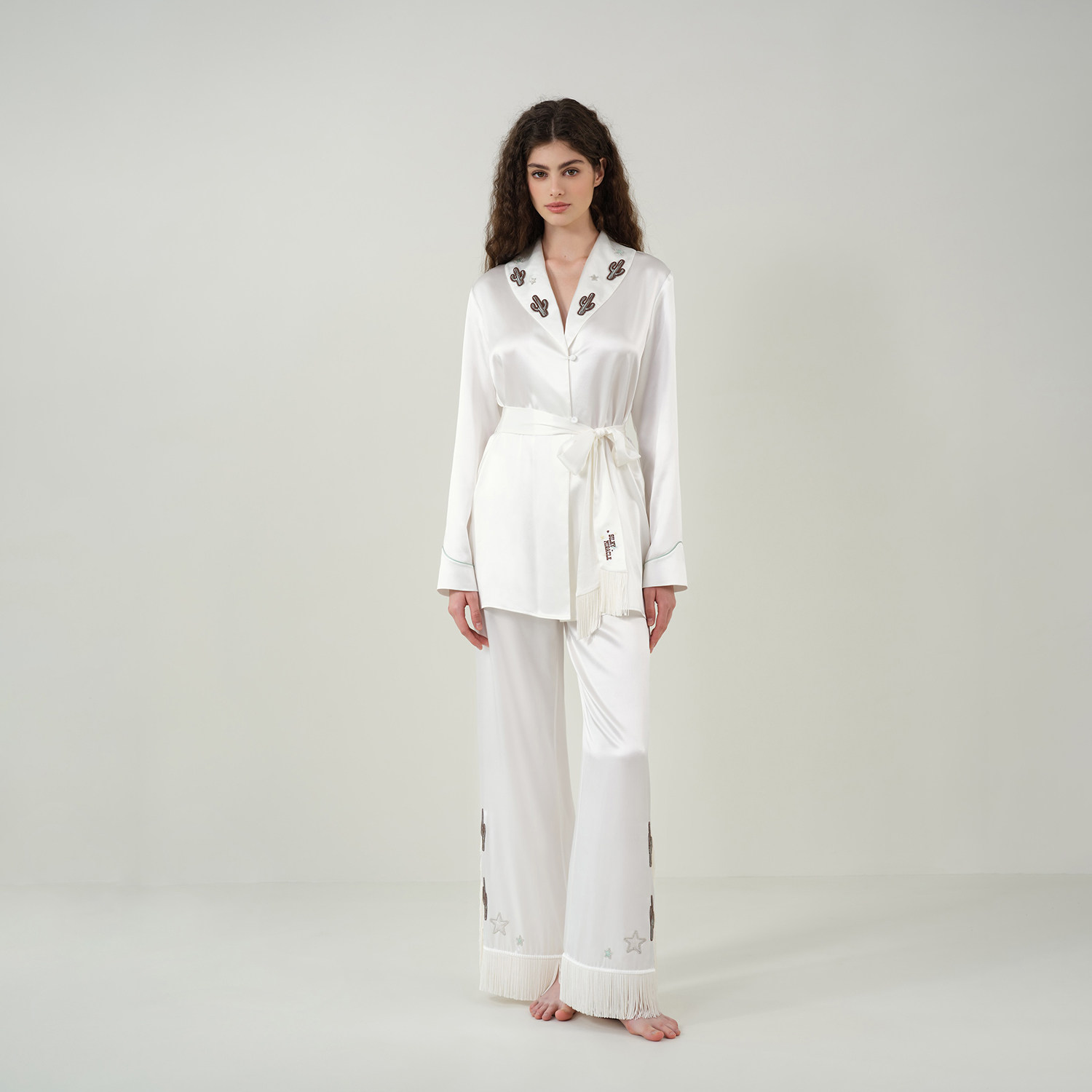 SILKY MIRACLE流苏真丝睡衣Cowboy桑蚕丝仙人掌绣花家居服套装女