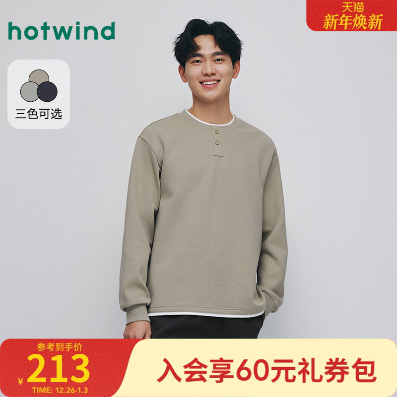 热风男士假两件卫衣2025年秋季新款宽松纯色基础套头卫衣简约百搭