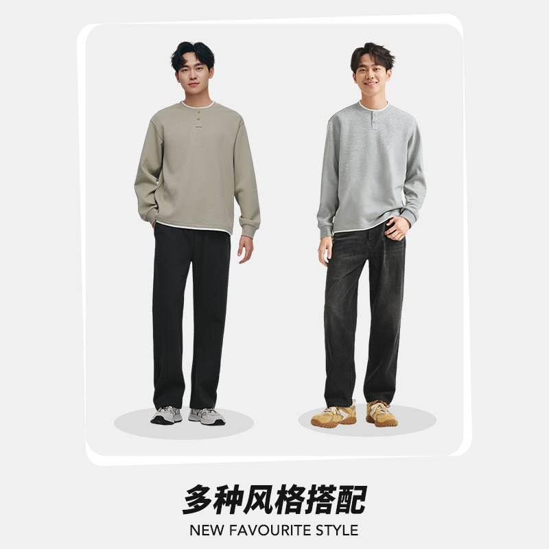 班尼路重磅卫衣男款秋季基础纯色圆领内搭男款宽松大码正肩套头衫