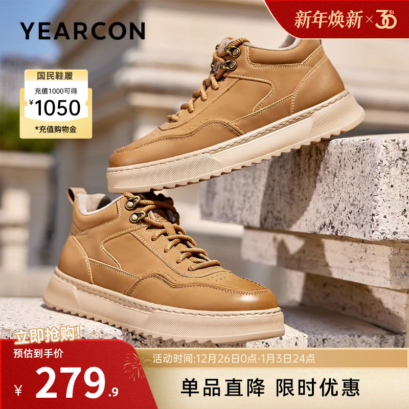 意尔康男鞋2025冬季新款加绒高帮板鞋男士运动休闲鞋二棉保暖工装