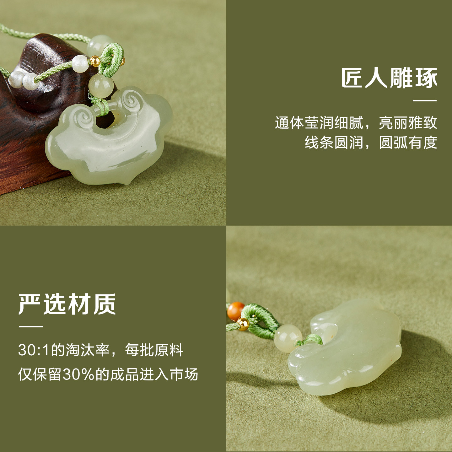 周六福小冰云吊坠祥云如意锁项链白月光玉髓圣诞礼物送妈妈