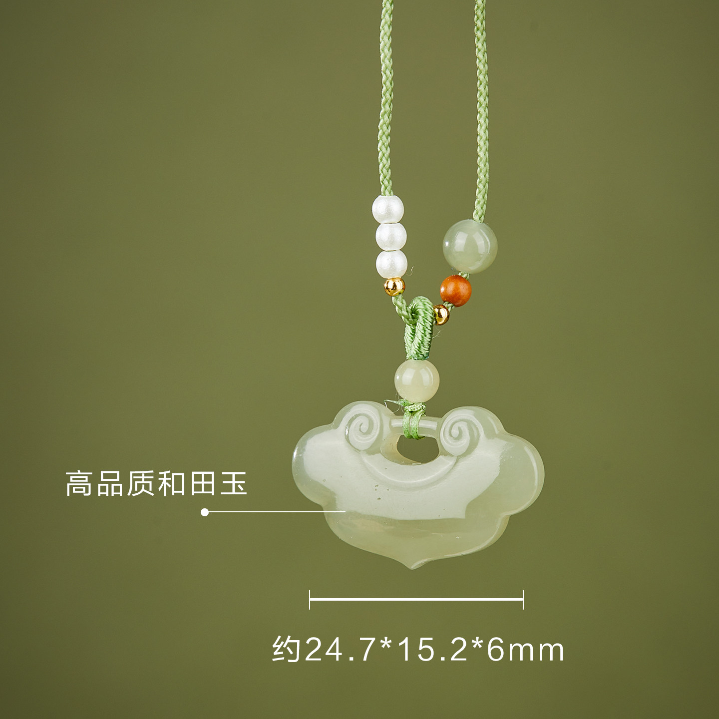 七彩云南天然和田玉吊坠青白玉如意锁项链平安锁挂件玉坠生日礼物