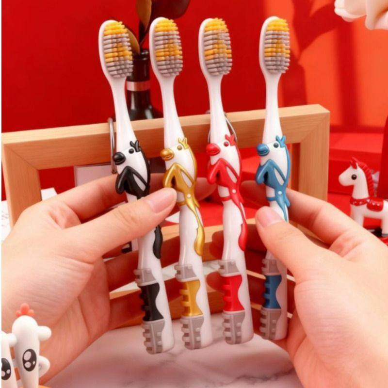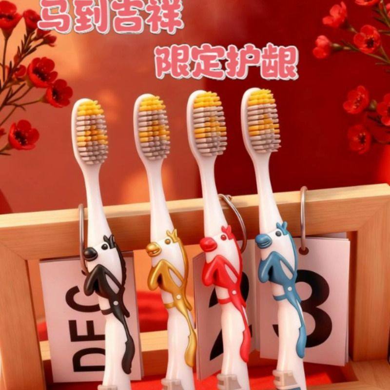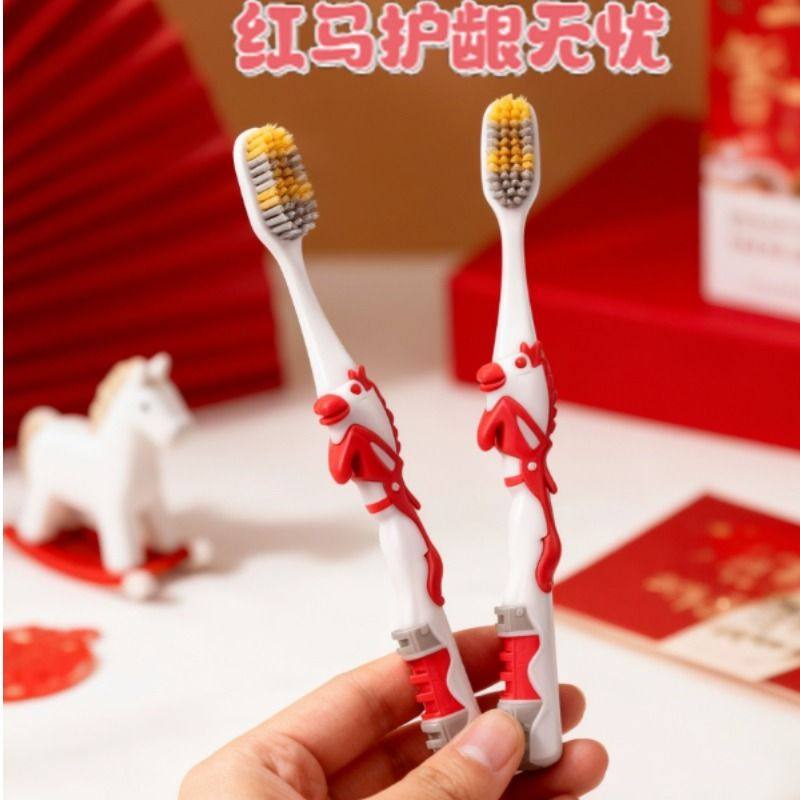 新款马型牙刷马年软毛家用结婚大红刷毛护龈本命年家用喜庆年货