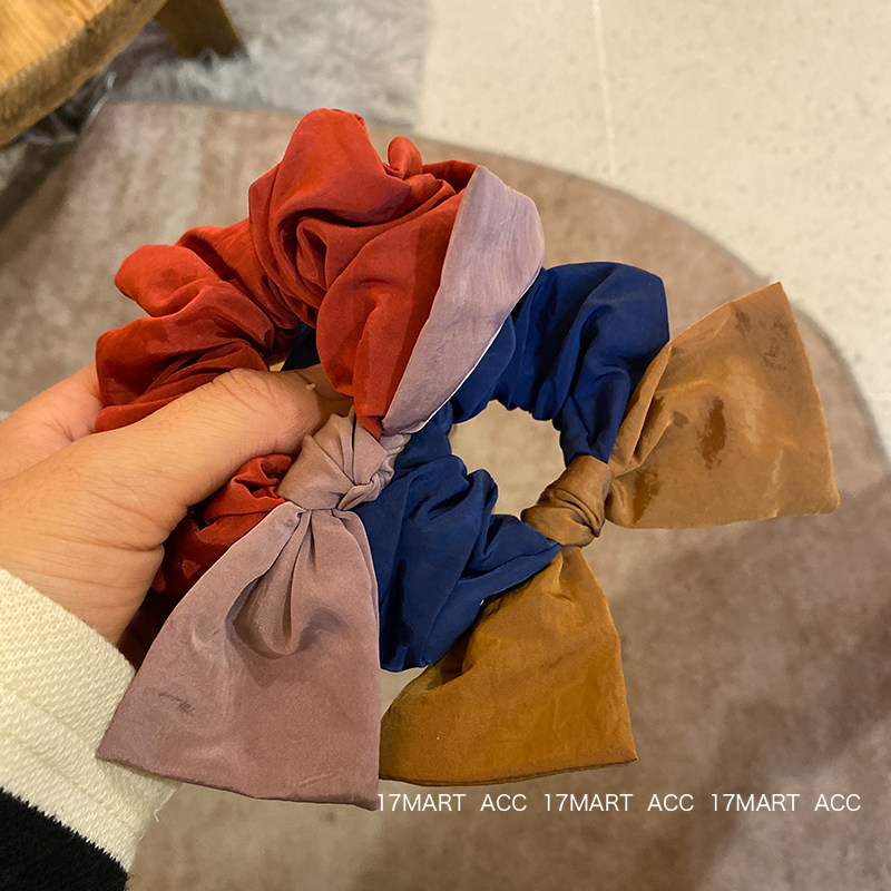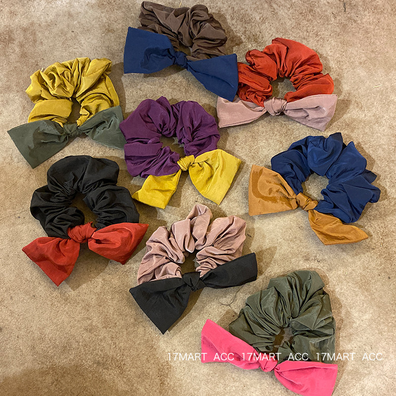 17mart韩国发饰复古撞色蝴蝶结大肠发圈洋气彩色马尾头绳无痕皮筋
