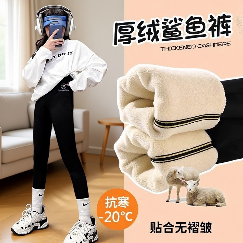 打底裤女童加绒裤春秋冬季鲨鱼裤子2025新款外穿儿童瑜伽裤加厚