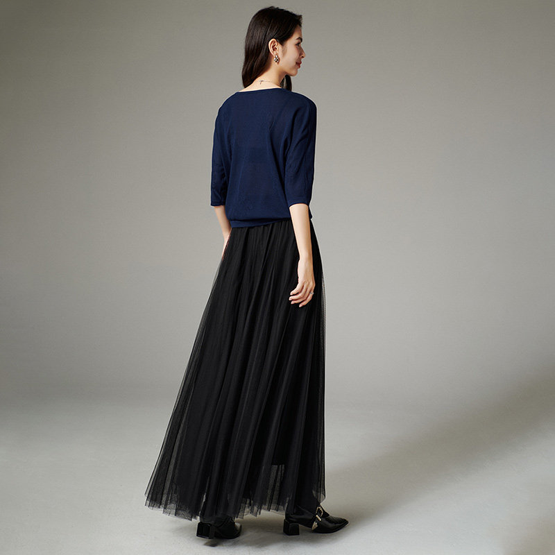 三福长袖上衣2025新款秋季圆领修身针织衫简约纯色内搭打底衫女装
