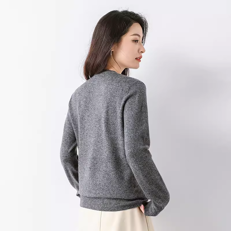 反季清仓春秋新款V领羊绒开衫女外搭纯色大码毛衣打底针织衫外搭