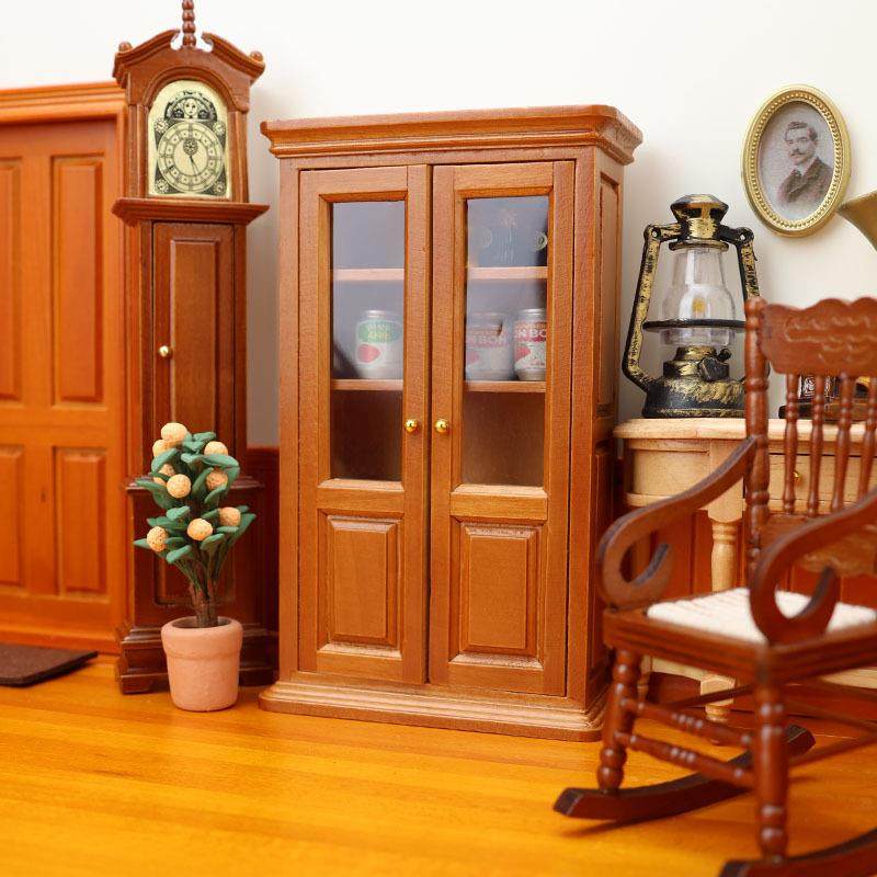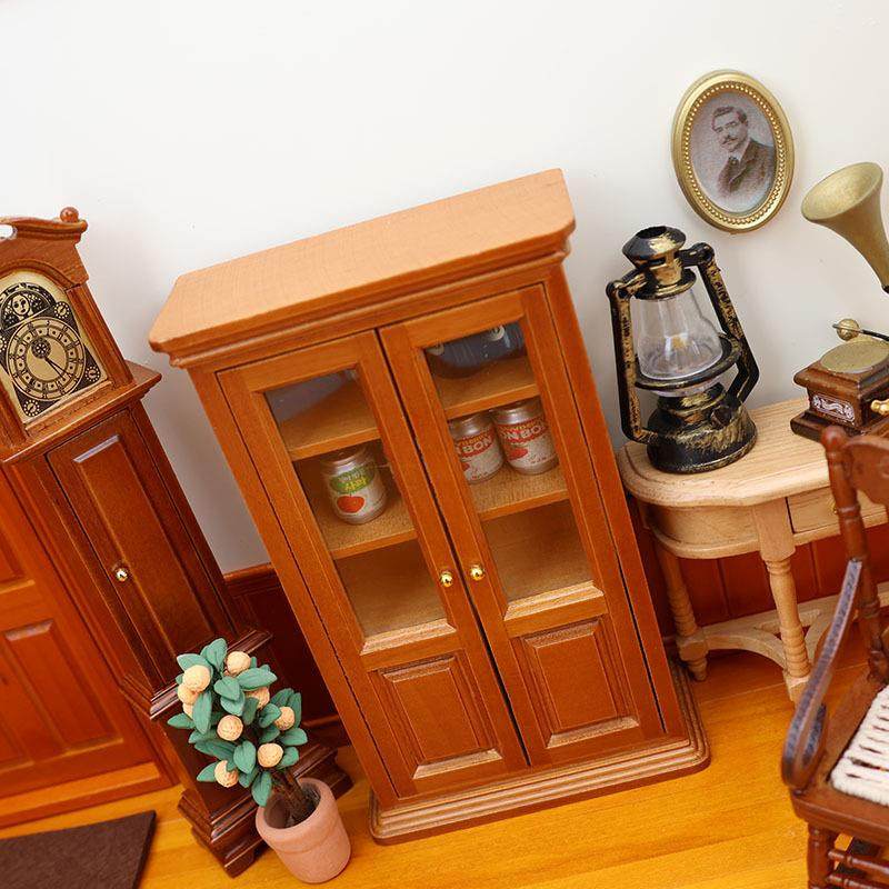 1:12迷你娃娃屋家具摆件微缩OB11书房场景书柜双门柜子仿真柜模型