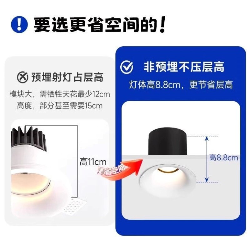 全光谱无边框小山丘射灯cob天花灯嵌入式深防眩弧面非预埋led筒灯