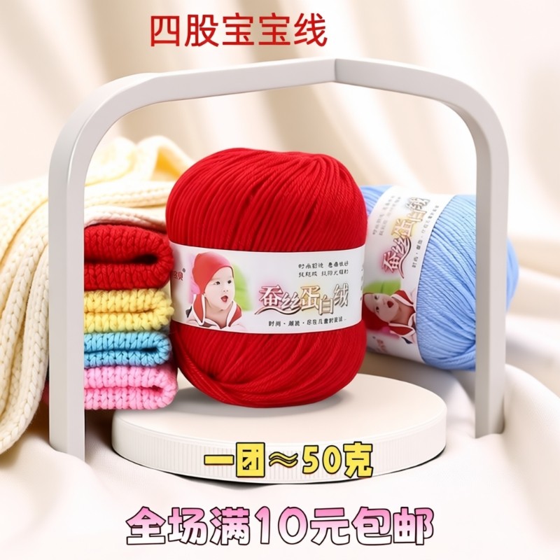 蚕丝不起球毛线手工编织儿童牛奶棉毛衣围巾线diy材料包宝宝红色