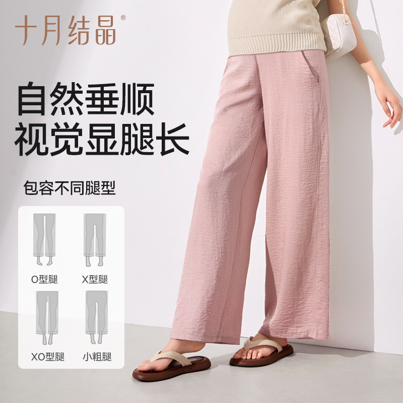 十月结晶孕妇裤秋季小个子垂感阔腿裤松紧腰部无托腹长裤2025新款