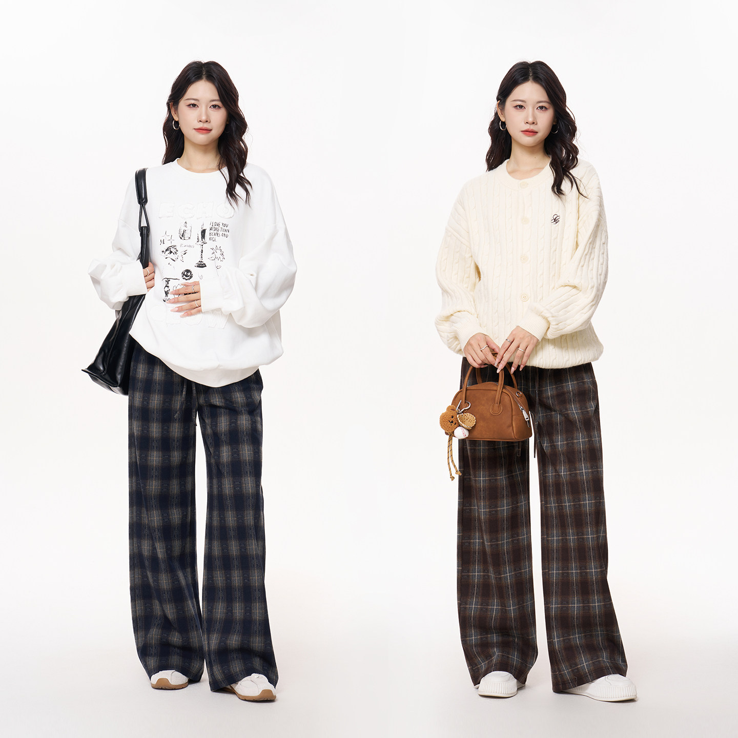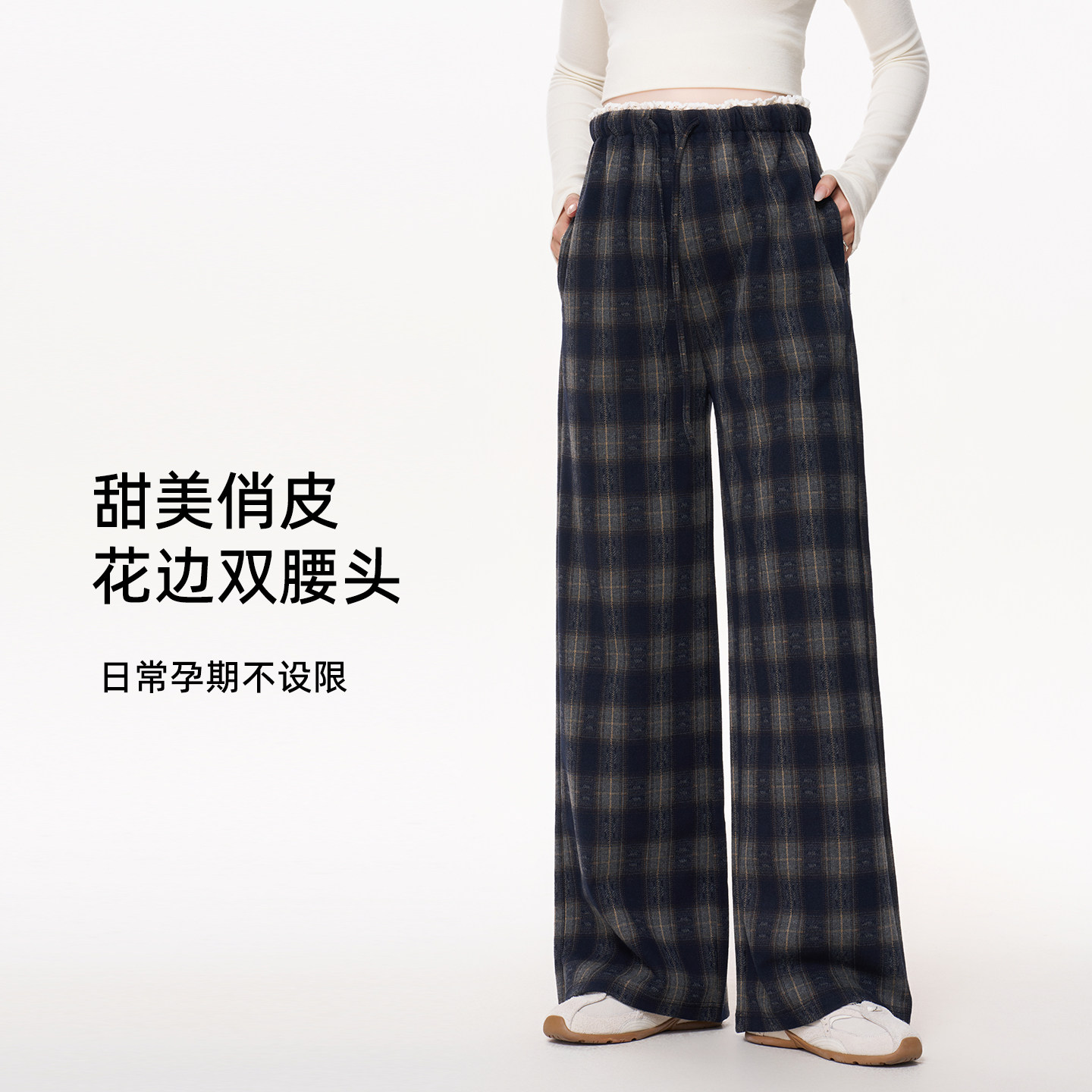 孕妇裤冬2025新款复古格纹休闲长裤小个子加厚阔腿裤冬装格子孕期