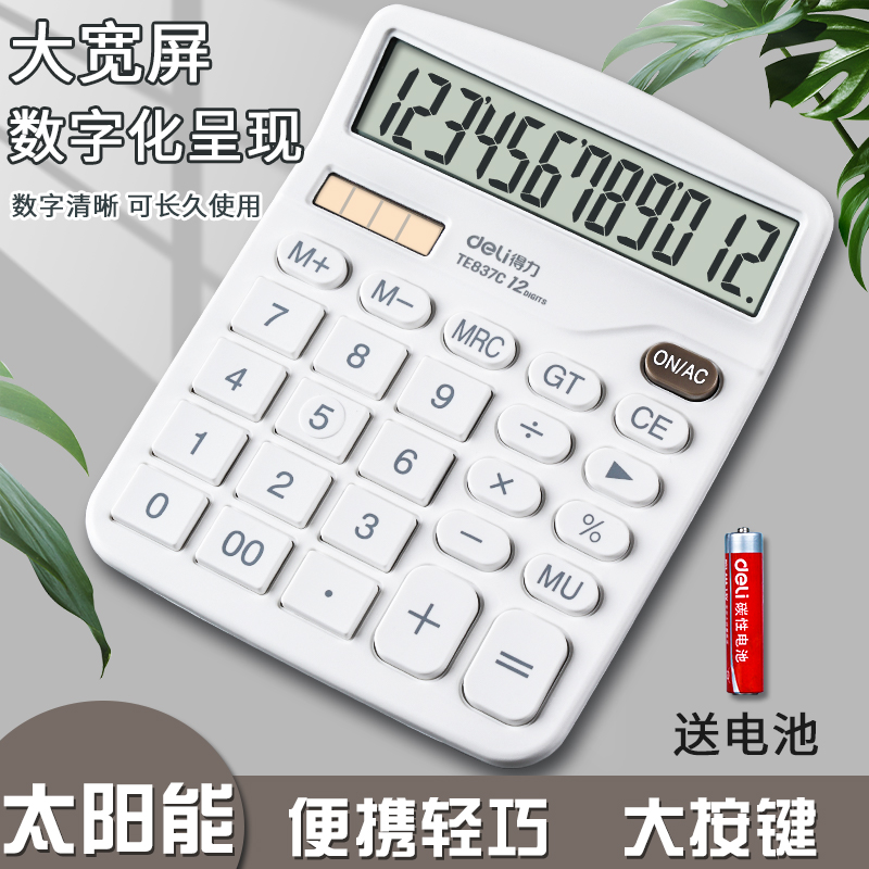 得力计算器办公用太阳能学生用数学分数教具人教版教材同步双电源多功能计算器带语音大屏会计财务办公计算机