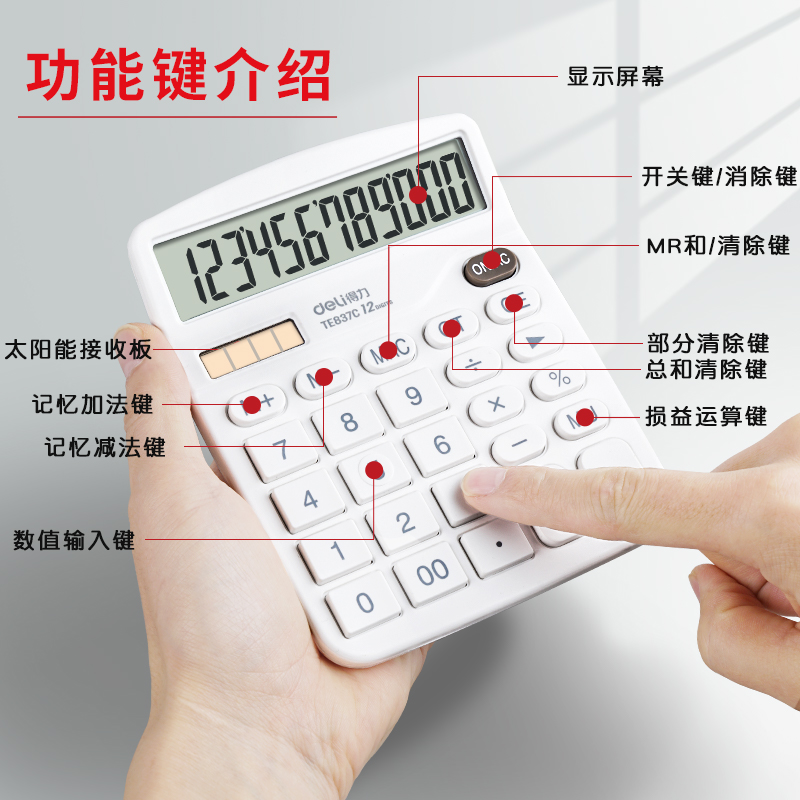 静音 双电源 12位数显示 多功能 办公用 简