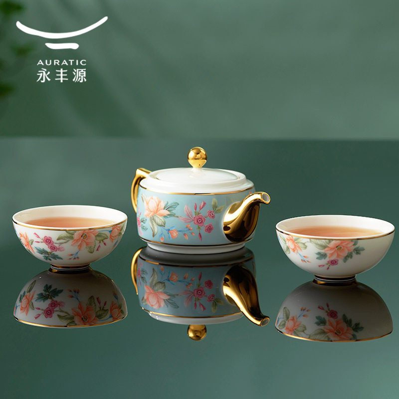 永丰源 天青时代4头旅行茶具陶瓷茶具 快客杯户外旅行茶具礼盒