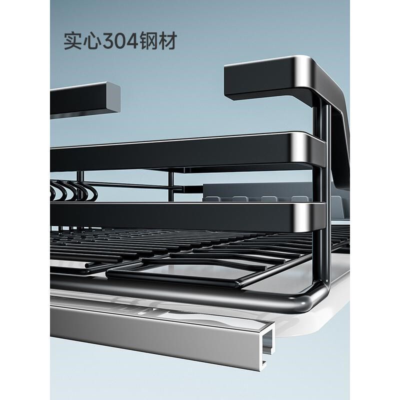 热销拉篮厨房橱柜304不锈钢拉篮碗篮单层碗篮抽屉式收纳