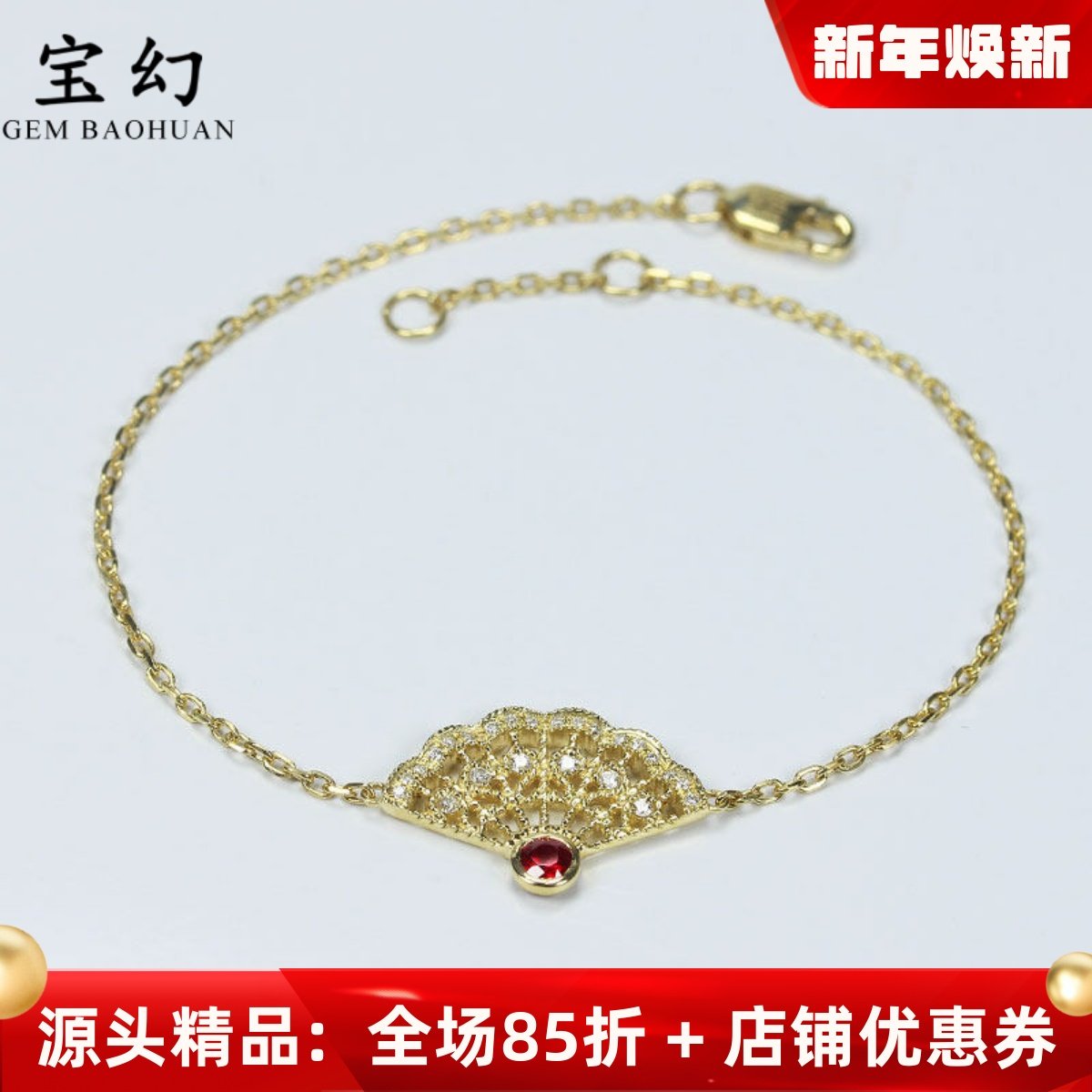 18k黄金天然鸽血红宝石麻花折扇子复古手链 镶钻石个性女款可定制