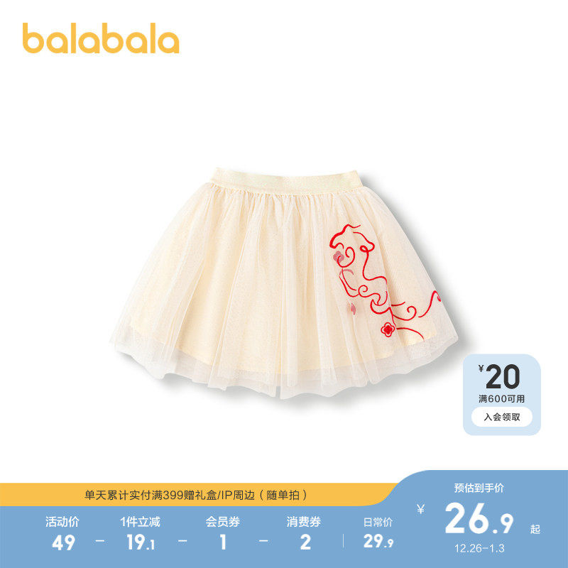 【商场同款】巴拉巴拉童装儿童短裙女童网纱裙绣花春秋裙子宝宝甜