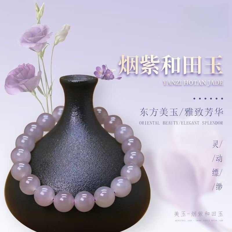 烟紫和田玉烟紫圆珠手串女款细腻油润玉石手链百搭款