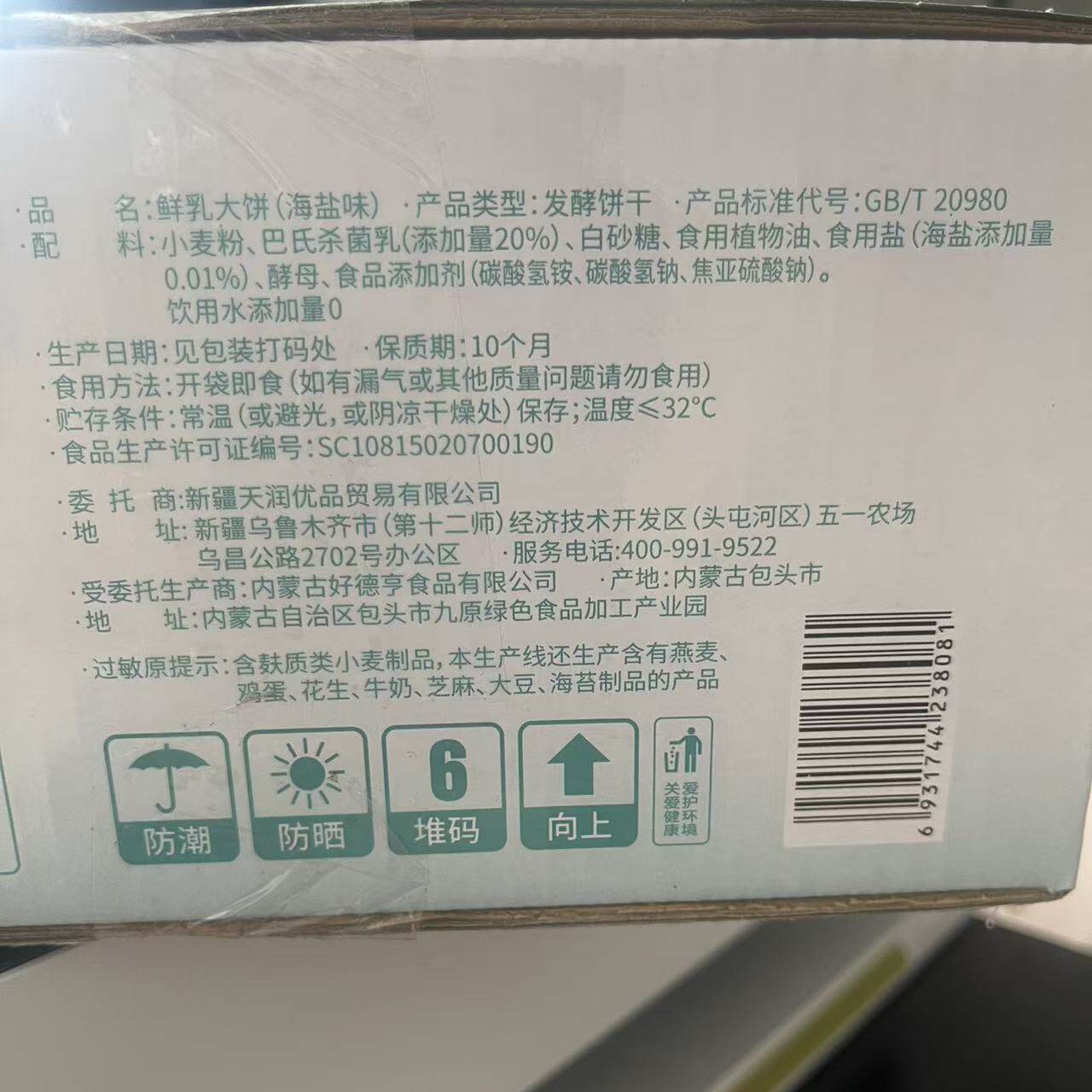 天润优品鲜乳大饼干海盐口原味早餐休闲零食独立包装