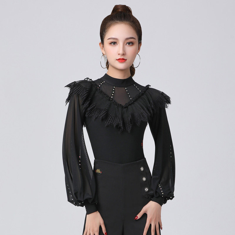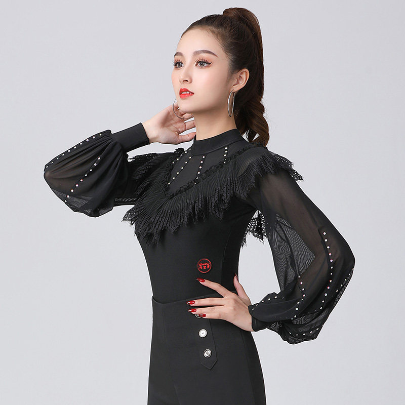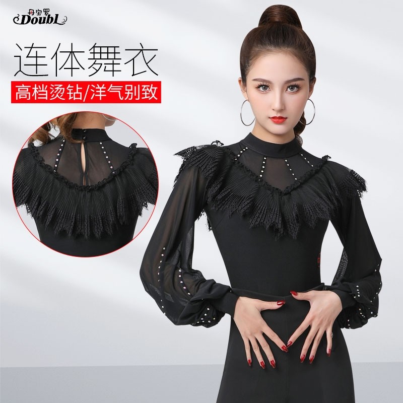 高端大气上档次舞衣丹宝罗烫钻高领交谊舞舞蹈服高级版拉丁舞上衣