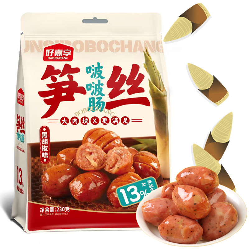 好嘉享笋丝啵啵肠香肠火山石台式小烤肠火腿肠大热狗肠纯肉肠脆皮