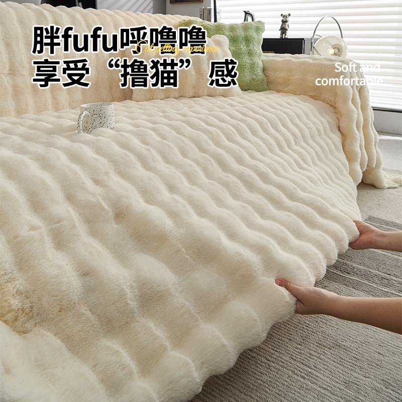 奶油风兔毛绒沙发盖布巾秋冬加厚2025年新款沙发坐垫冬保暖套罩毯