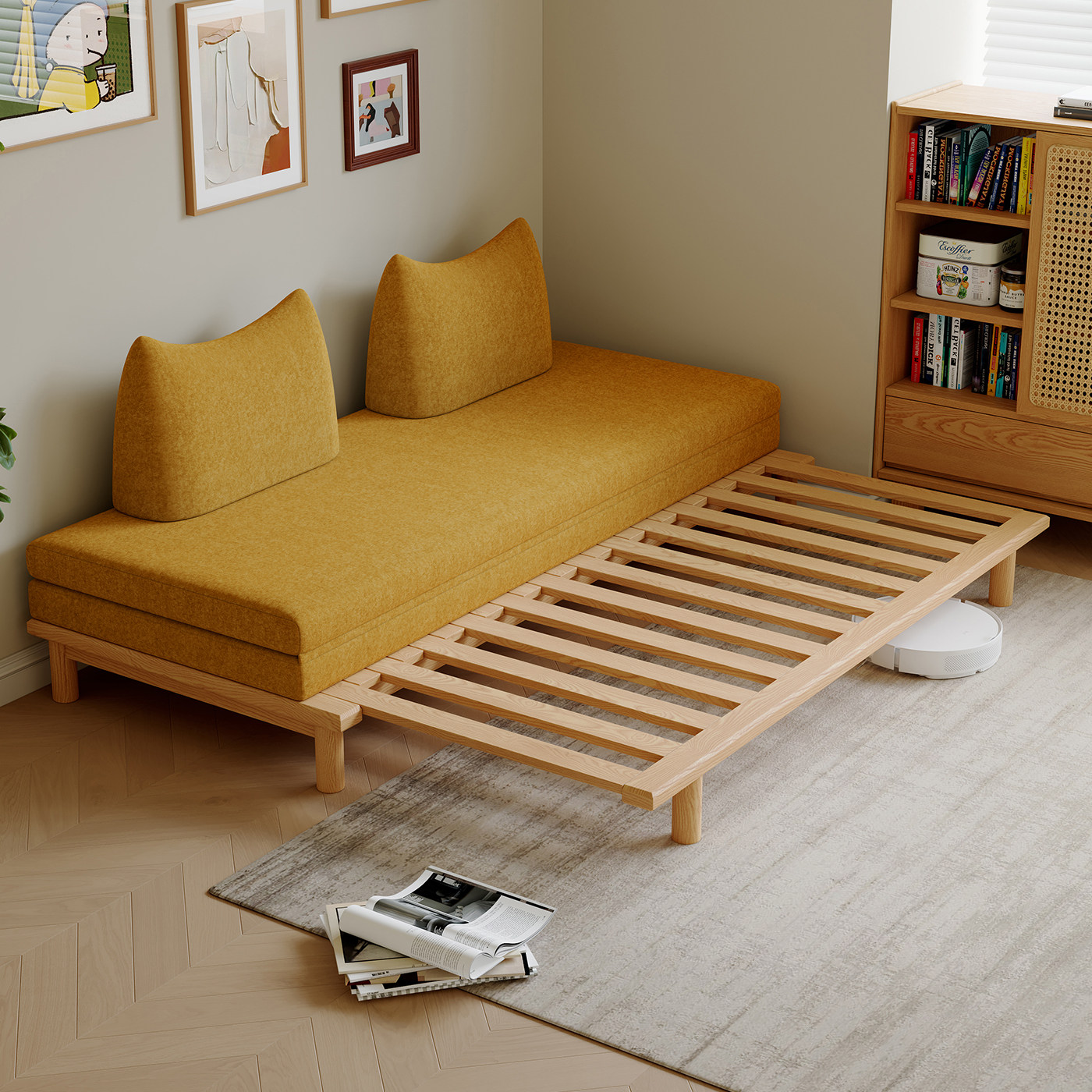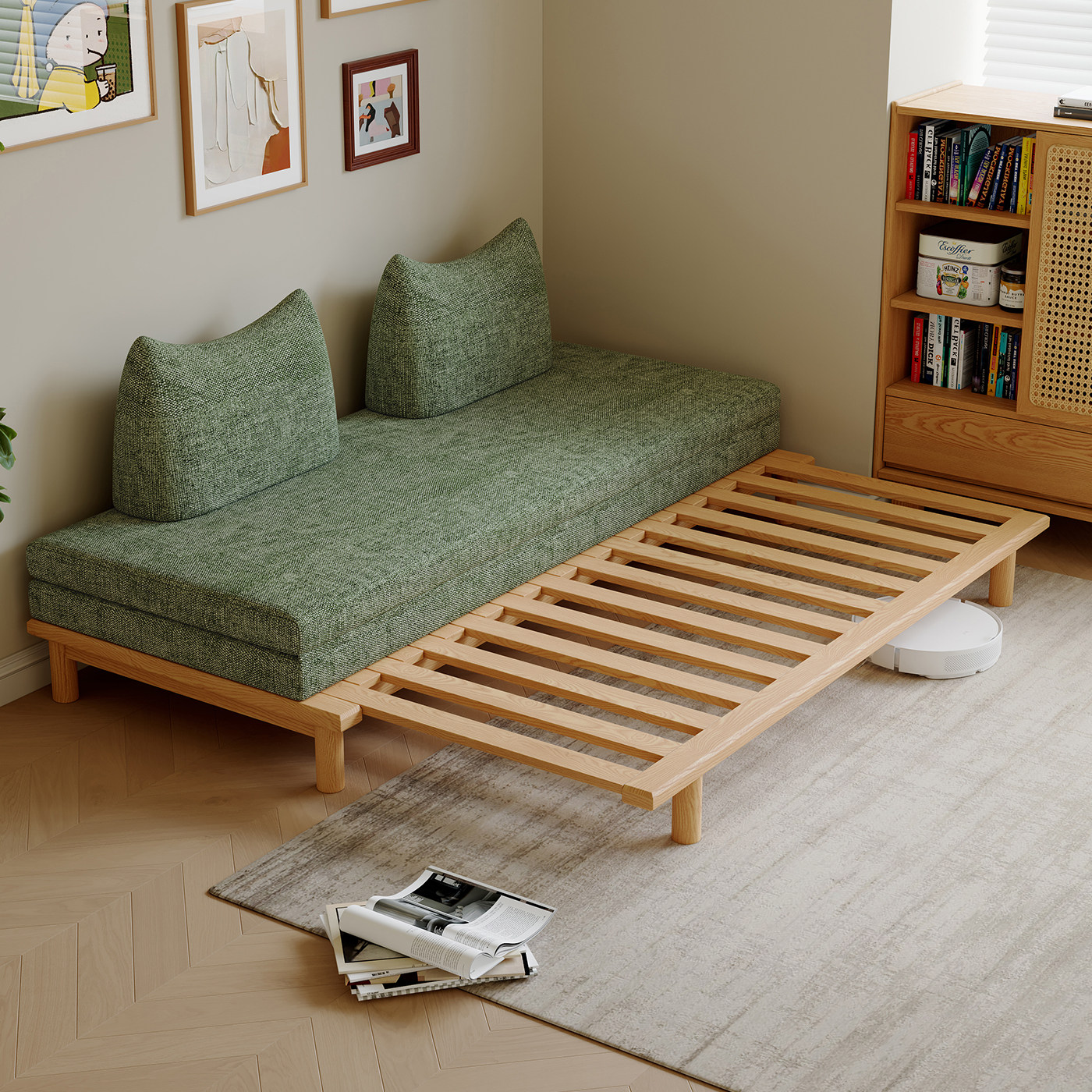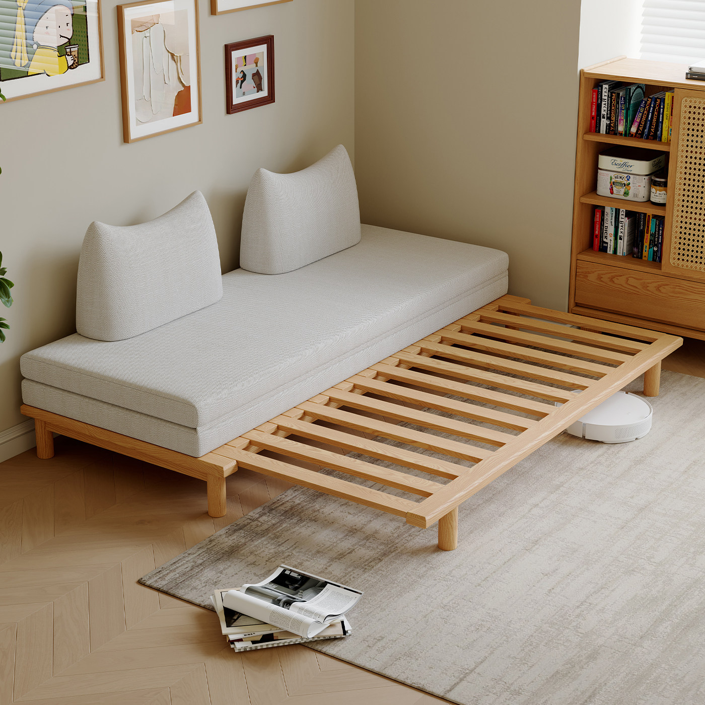 司朴一体两用可伸缩抽拉折叠沙发床原木风客厅可拆洗棉麻布艺沙发