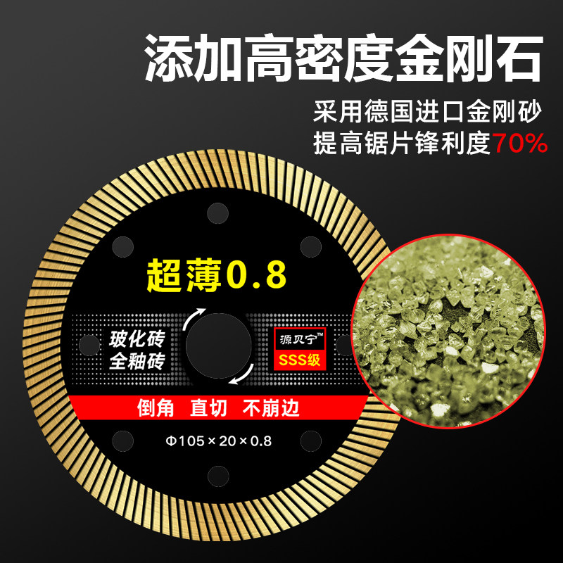 0.8岩板角磨机切割片超薄105锯片全瓷玻化砖不崩边瓷砖干切金刚石