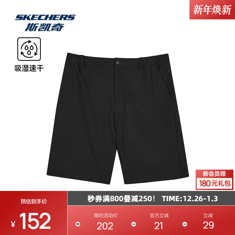 斯凯奇2025新品男士针织短裤舒适休闲吸湿速干科技舒爽面料