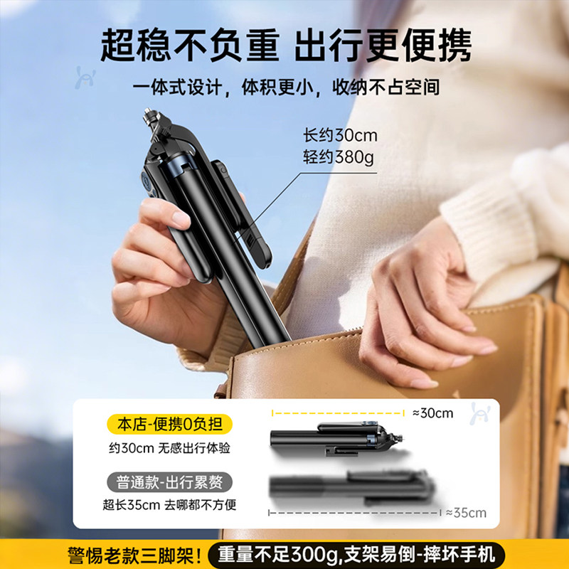 出游专用】手机自拍杆2025新款旅游便携式落地通用三脚架360度旋转蓝牙迷你手持拍照直播神器防抖支架演唱会
