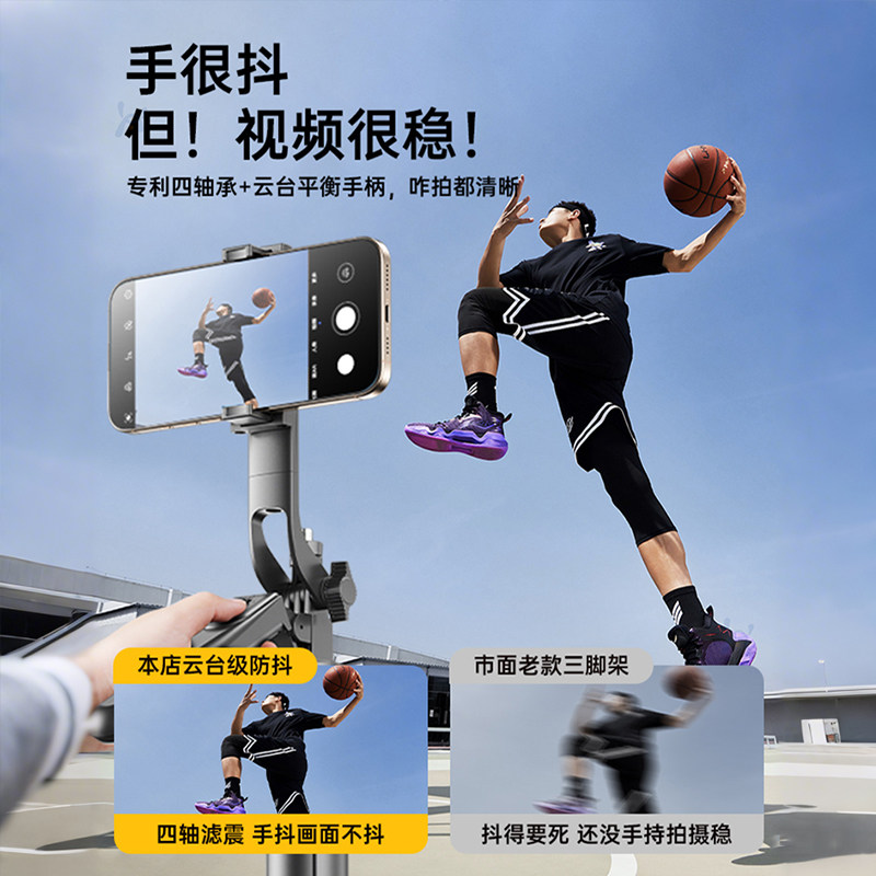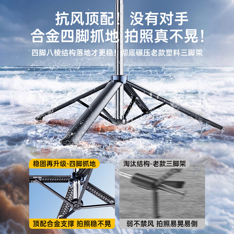 防抖自拍杆落地四脚架旅游演唱会直播手机相机通用拍照神器远程蓝牙遥控器360度旋转多功能手持云台2025新款