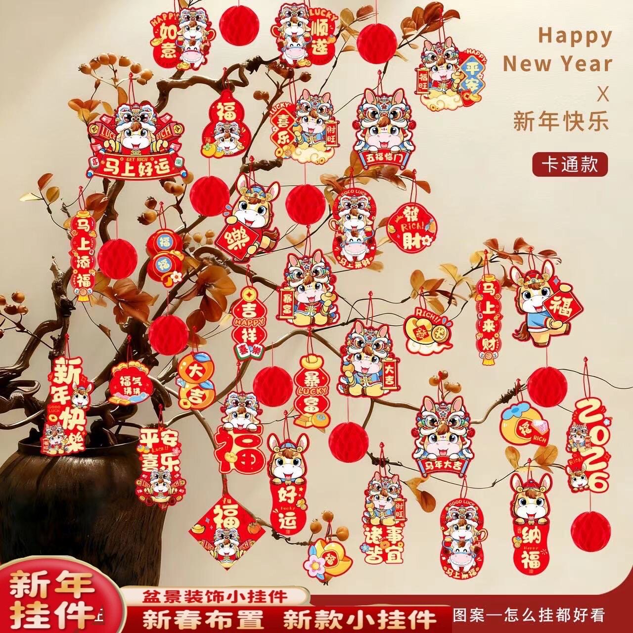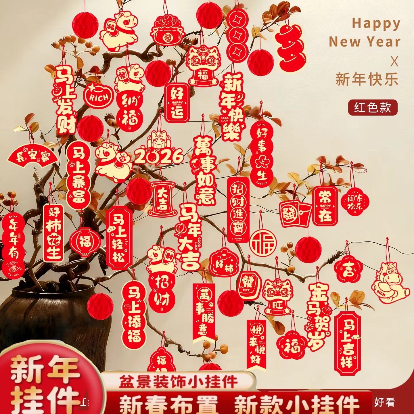 2026新年绿植挂件过年树上年味装饰品马年盆栽小挂饰春节氛围布置