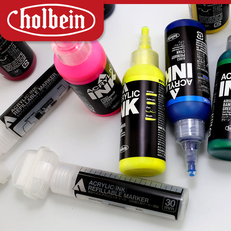 日本荷尔拜因INK液体丙烯颜料墨水流体画DIY手工棉布皮革改高达色